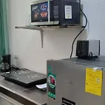 Et værelse har kaffe- og tefaciliteter, et fladskærms TV med satellitkanaler, mens køkkenet også indeholder en mikrobølgeovn, kaffemaskiner/tekedler og et køleskab.
